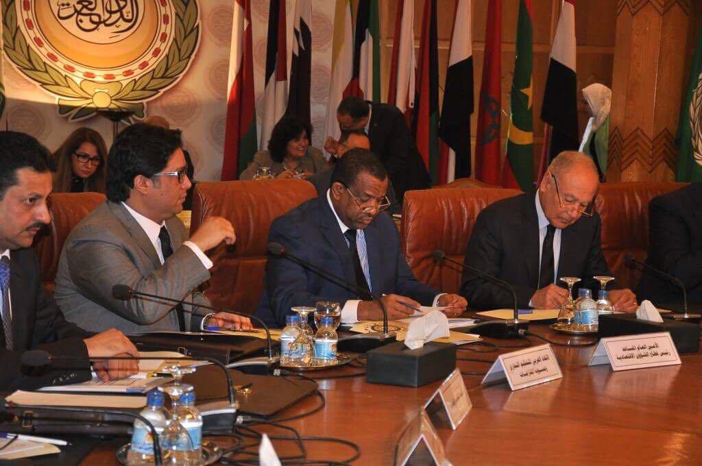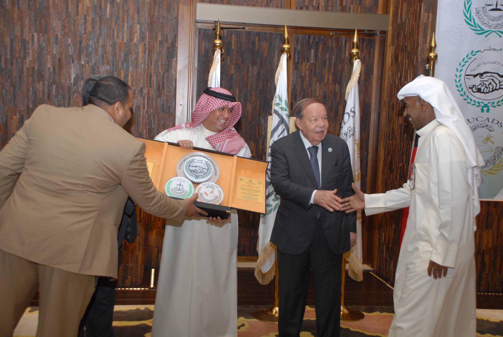 Advisor Sheikh Meshaal al-Sabah, President of the Arab Federation of Commercial Arbitration and Dispute Resolution, during his meeting with His Excellency Mr. Ahmed Abul Gheit, Secretary General of the Arab League, at the Arab Federations Forum of the Arab League.